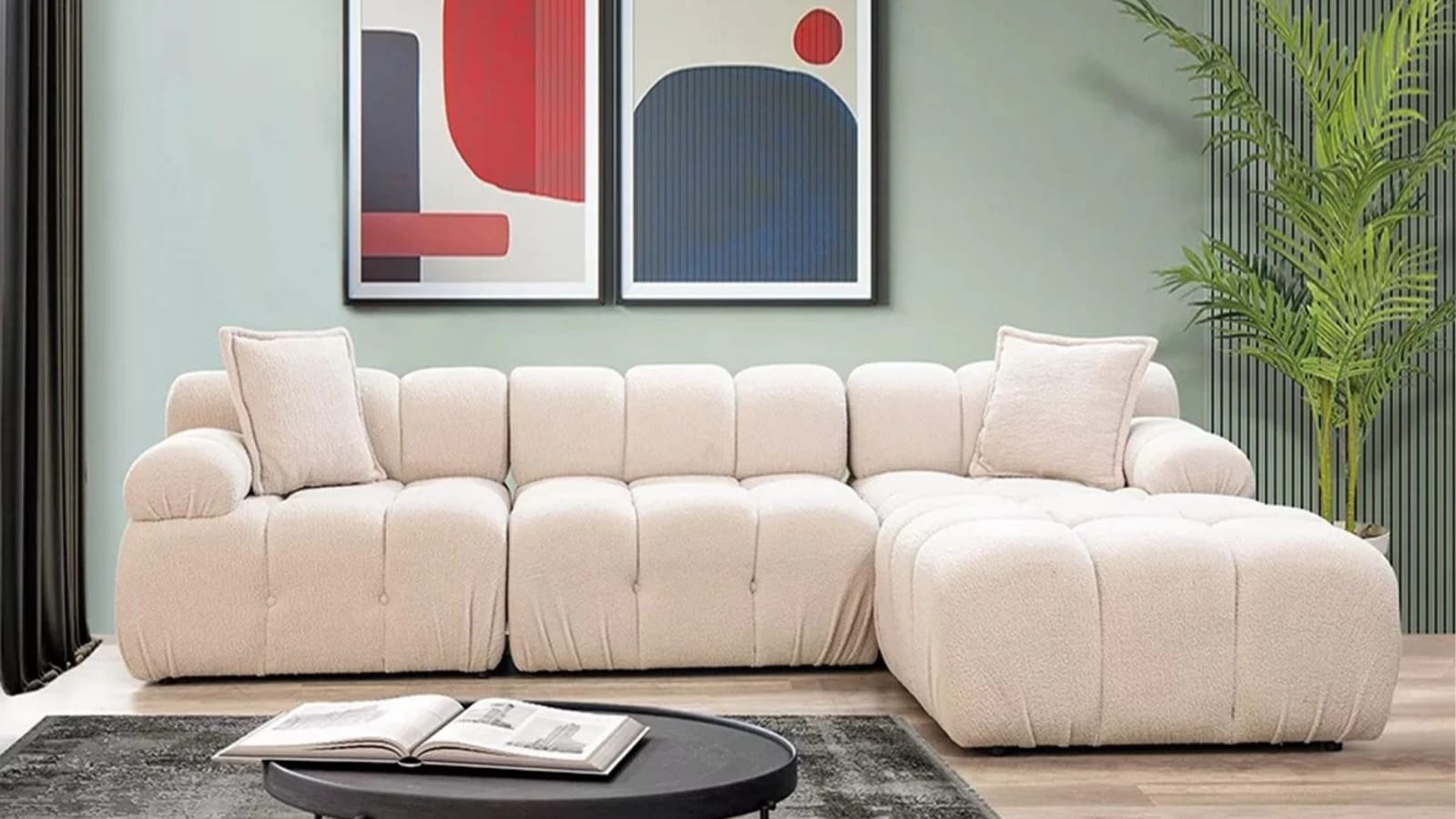Kolmest moodulist ja järist koosnev valge diivan pakub avarat istumisruumi ning pehmet toetust kogu perele. Hele sametjas toon (Karaca201) loob luksusliku meeleolu ja lisab ruumi soojust ning isikupära.