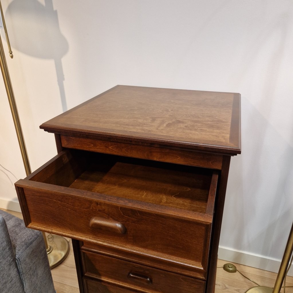 Kummut on valmistatud kvaliteetsest kasepuidust, pakkudes vastupidavust ja pikaajalist kasutusmugavust. Sahtlid liiguvad ilma siinideta, mis on selle mudeli eripära ning annab mööblile klassikalise kasutustunde.